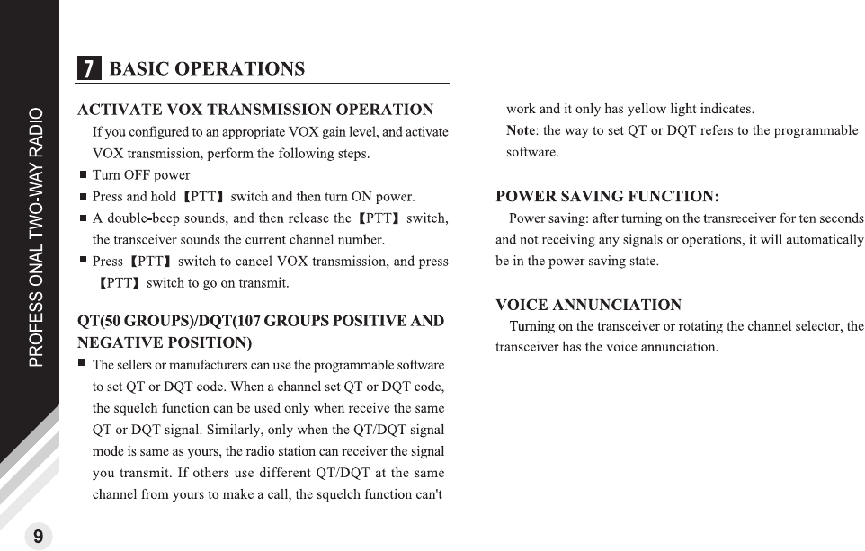 lights red. You can cause the radio to transmit by pressing the “PTT” switch.
