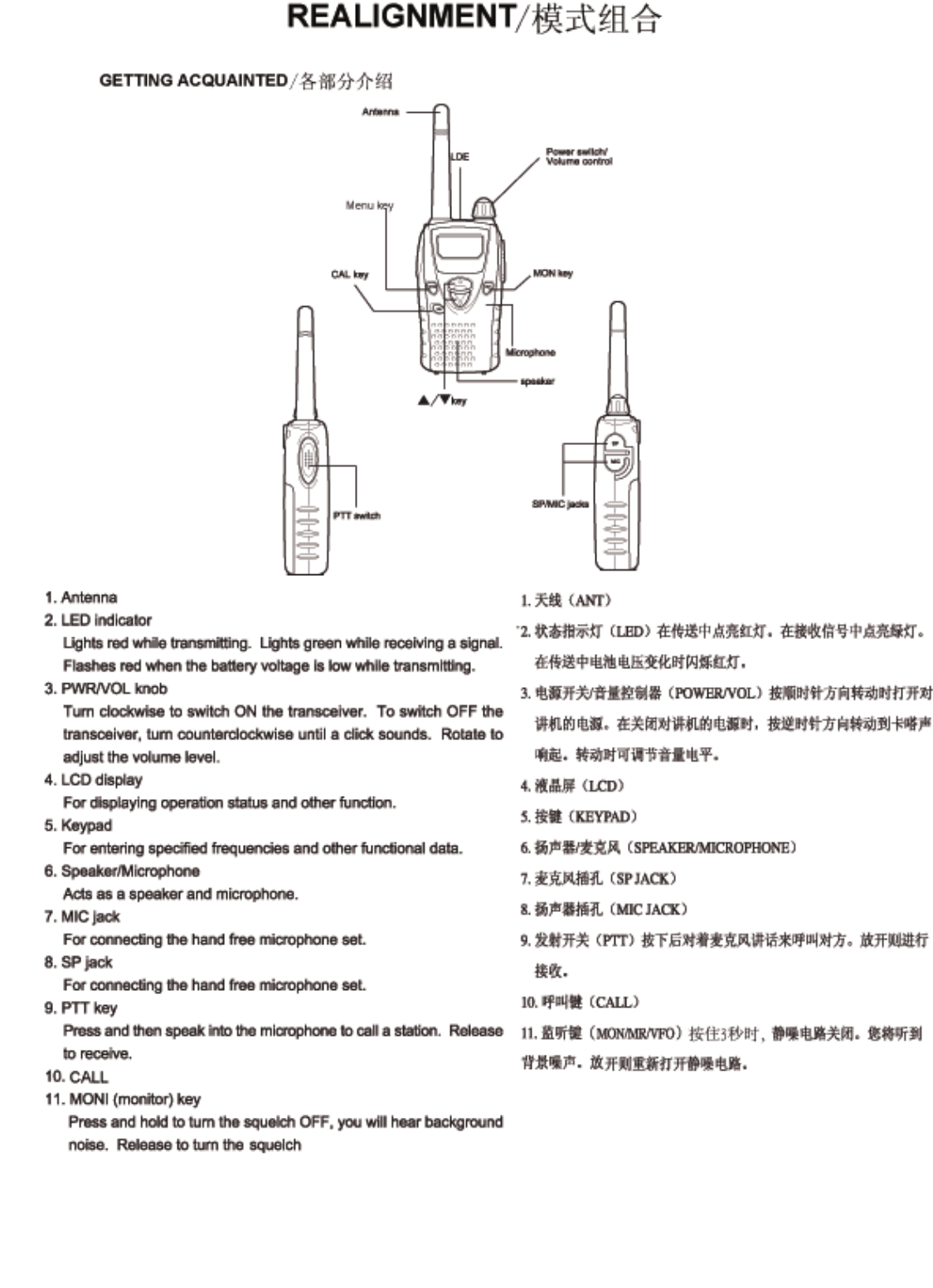 red. You can cause the radio to transmit by pressing the “PTT” switch.