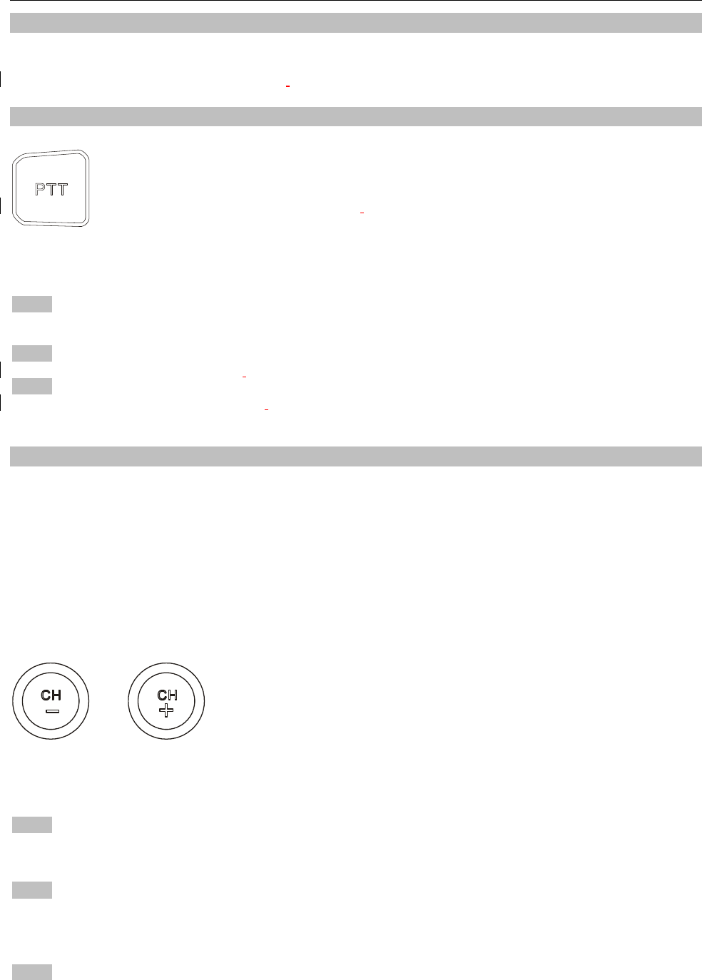 Press and hold PTT, radio operates in transmit mode. Release PTT, radio returns to receive mode