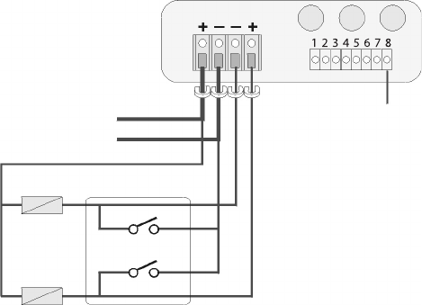 8 Verde Allarme esterno, commutato a massa, 30 V DC e 250 mA max.