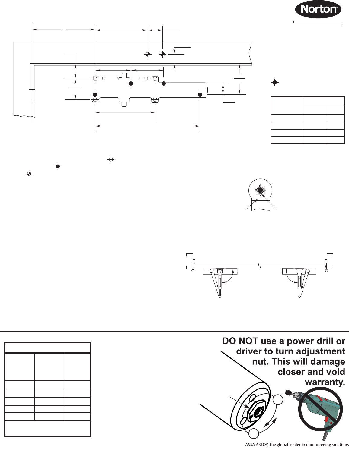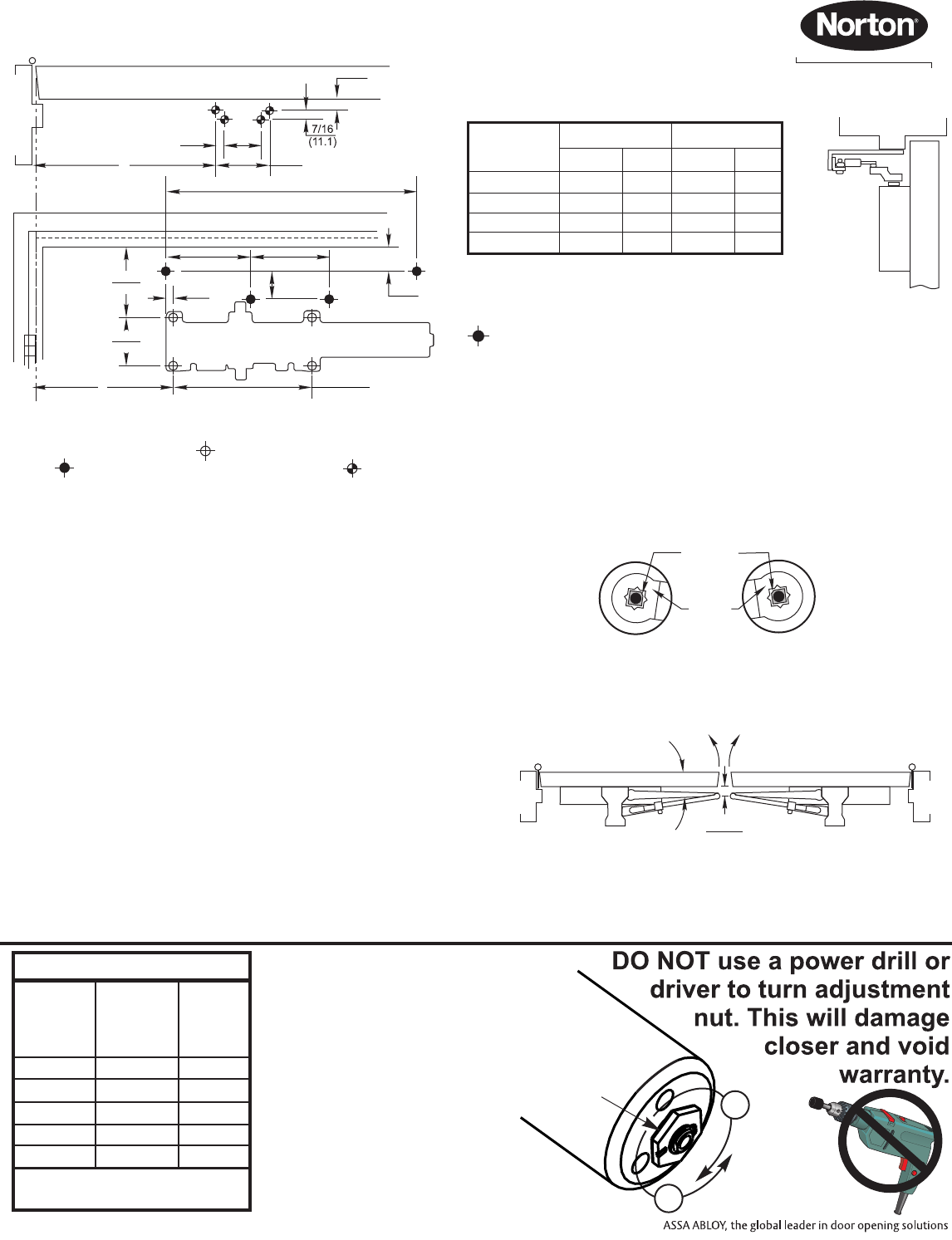closing force to reliably close and latch the door. Power adjustments charted on pages 3,4 and 5