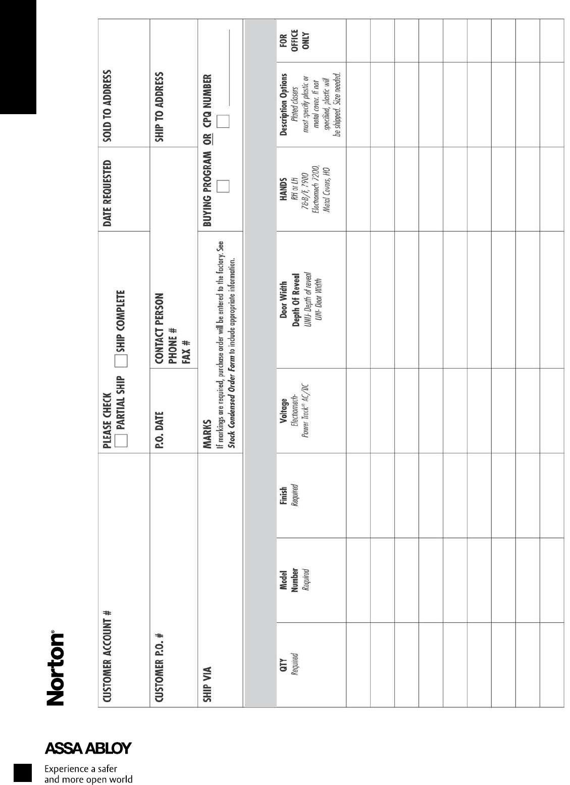 the express written permission of ASSA ABLOY Accessories and Door Controls Group, Inc. is prohibited. Contact Norton at: 877-974-2255