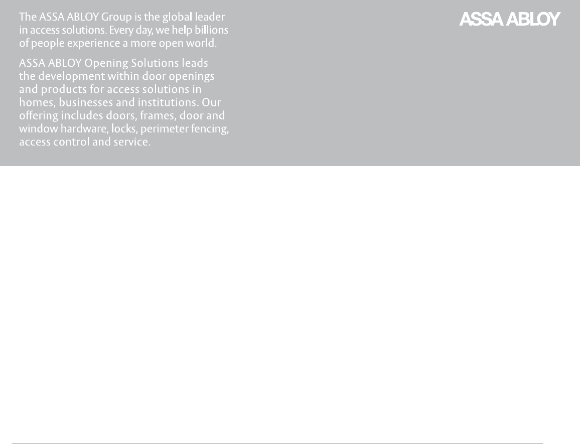 In Canada contact us at: 800-461-3007 or visit www.assaabloydss.ca