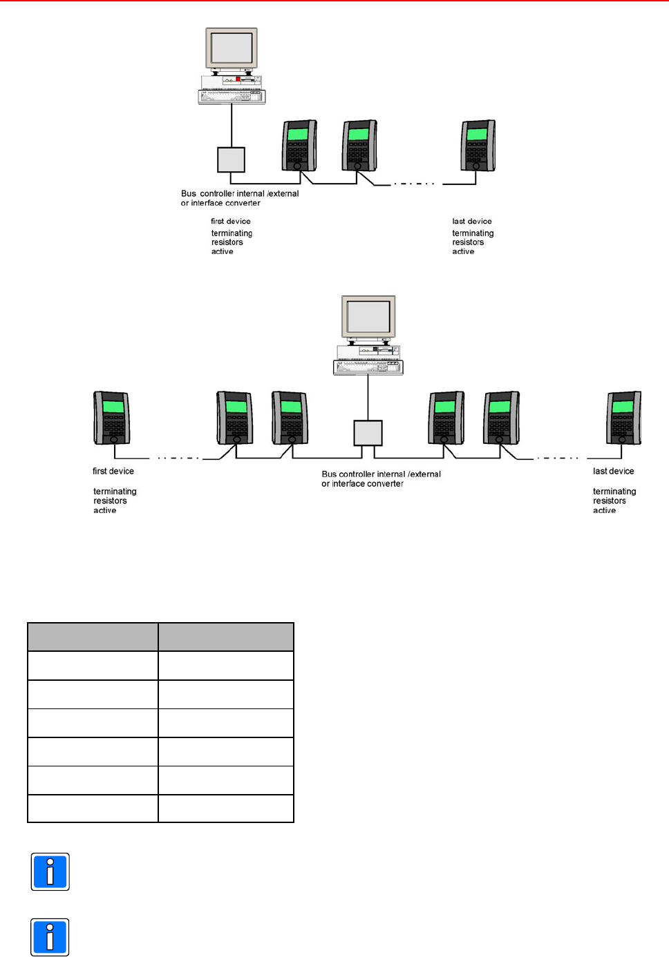 áAsynchronous RS 485 host interface (3-wire / 5-wire connection, max. distance = 1.500m) for