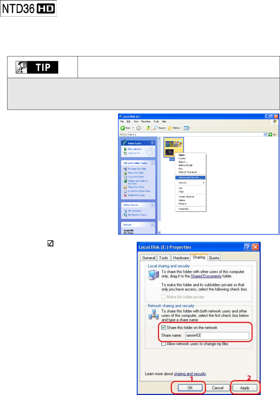 as if these files are in HDD of NTD36HD. To use shared folder, you must proceed