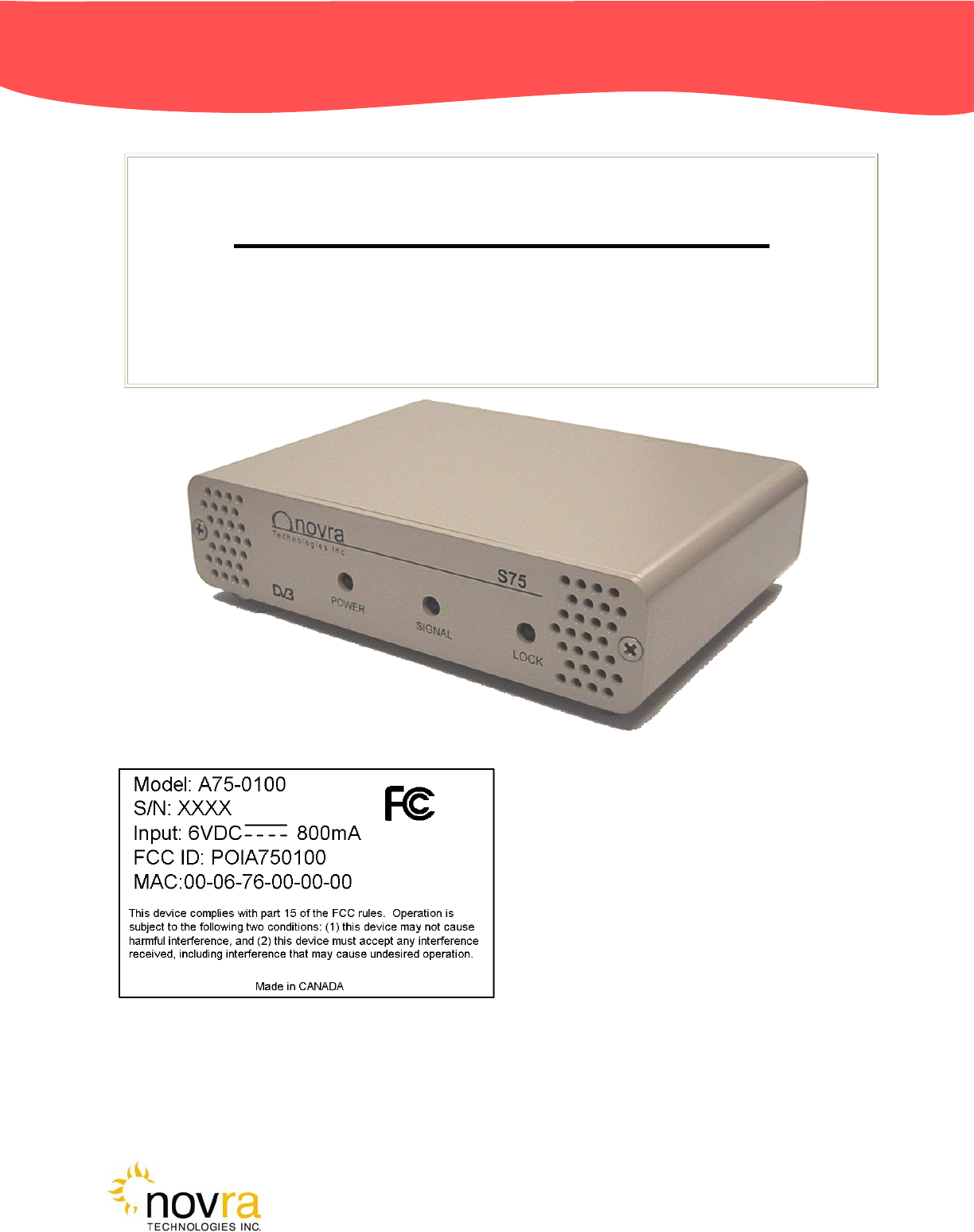 Novra Technologies A750100 Communications Receiver User Manual Manual