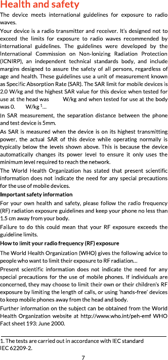 W averaged over one gram of tissue. Device types NX619J
