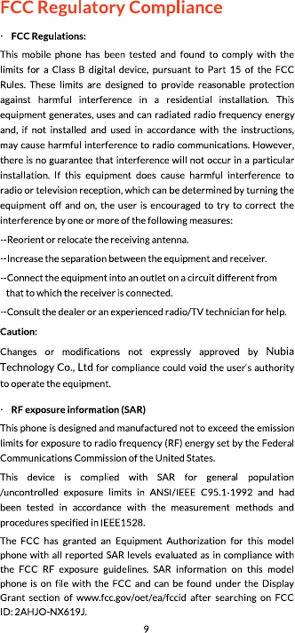 (FCC ID: 2AHJO-NX619J) has also been tested against this SAR limit.