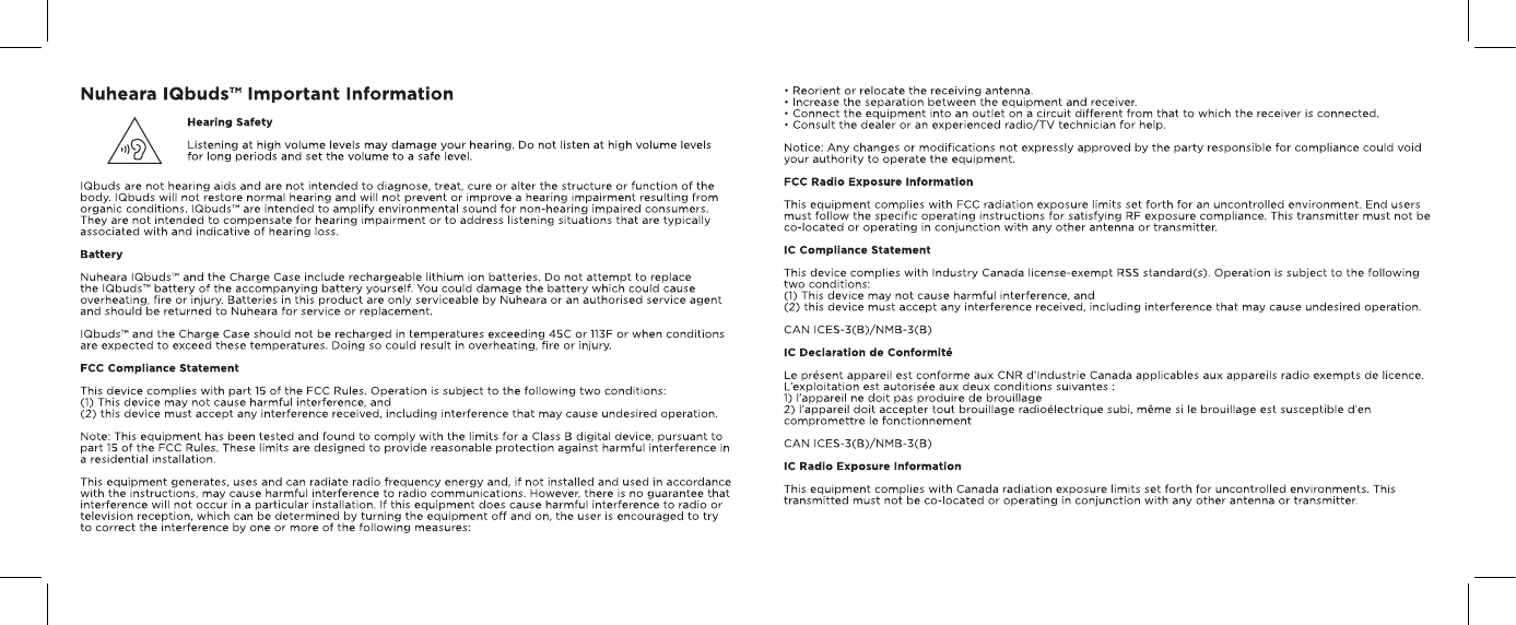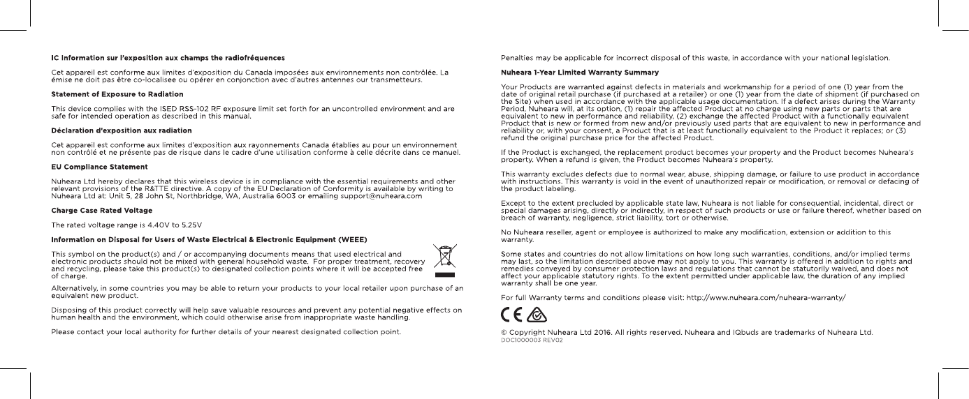 Project #Name:AW Description:Other:Veritiv Design P/N:Veritiv AW P/N:Customer P/N:Customer AW P/N:ECO#:Printing Method:PHX-21892050-01-PPR-3Nuheara IQbudsRegulatory InsertPHX-21892050-01-PPR-3BPHX-21892050-01-PPR-3B-ART-1CDOC1000003 REV02TBDTBDBlackOPERATORBZBZBZDESCRIPTION11.18.16 Preliminary Release11.28.16 Added French12.20.16 Added textProcess BlackGLOSS: SPOT OVERALLMATTE: SPOT OVERALLAQUEOUS:UV:GLOSS: SPOT OVERALLMATTE: SPOT OVERALLPPLAM:SPECIAL:GLOSS: SPECIAL:MATTE:SEE SPECIALINSTRUCTIONSBELOWC O A TINGSSEPARATION SREVISION HIST O R Y P R O J E C T INF O RMATIO NTHIS PAGE DOES NOT PRINT