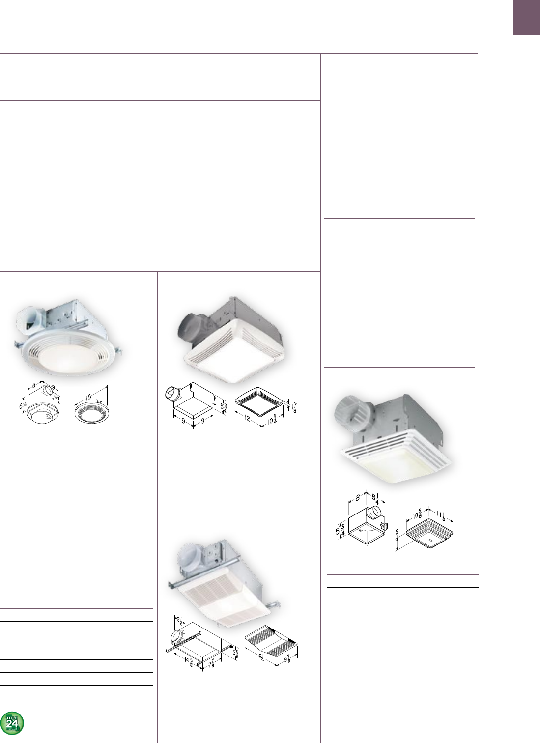 Page CFM Sones Height Duct Collar Diameter Fan Duct Amps