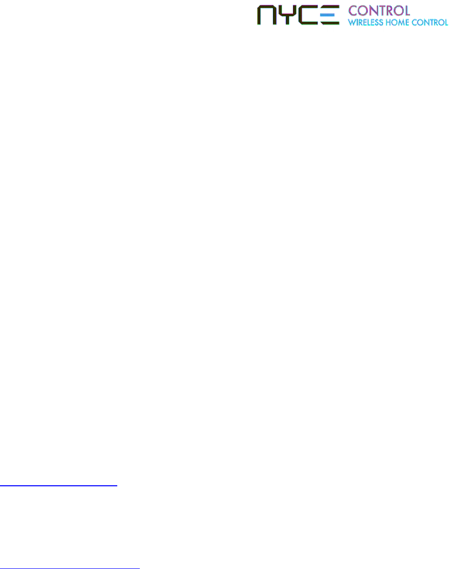Changes or modifications not expressly approved by NYCE Control, Inc can void the user’s authority to