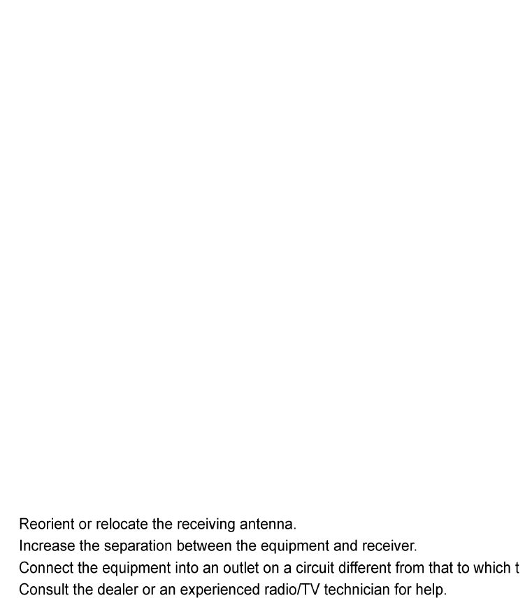 and on, the user is encouraged to try to correct the interference by one or more of the following measures: