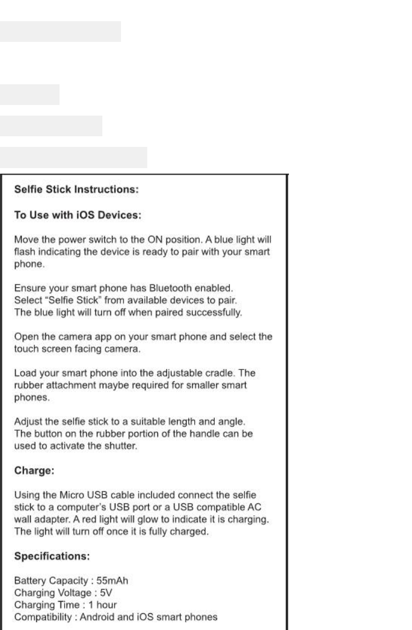 ODOYO ZP100 Selfie Stick with Removable Fill Light User Manual
