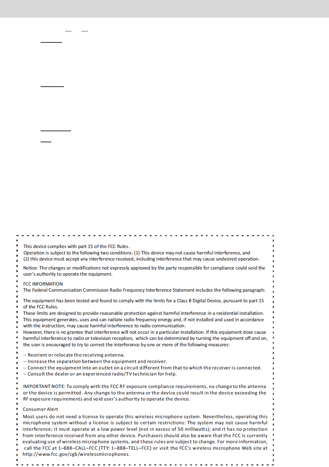 1. This Transmitter must not be co‐located or operating in conjunction with any other antenna or transmitter.