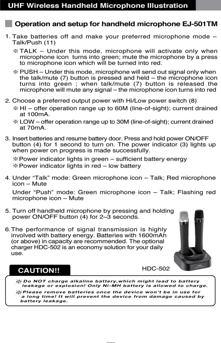 OKAYO Electronics EJ501TM Wireless Handheld Microphone User Manual