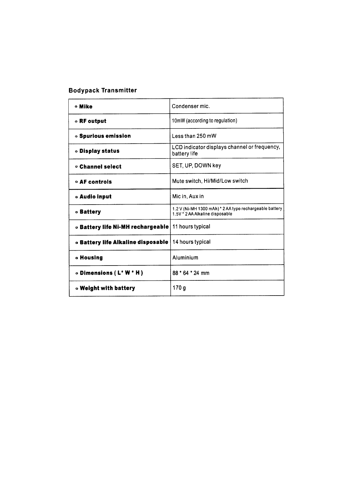 OKAYO Electronics Co., Ltd. Wireless Bodypack Transmitter Manual