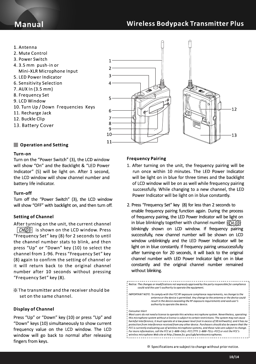 OKAYO Electronics EJ-7TPLUS Wireless Bodypack Transmitter User Manual