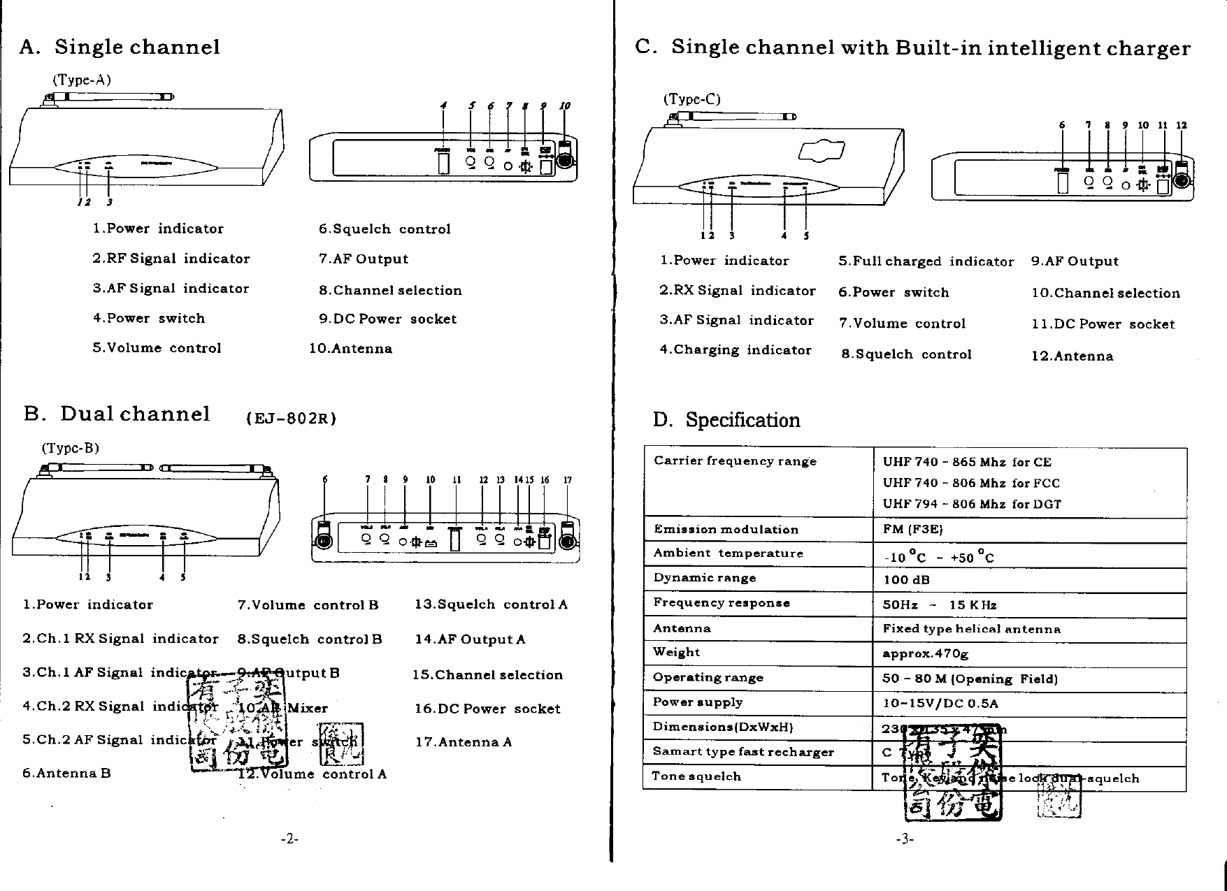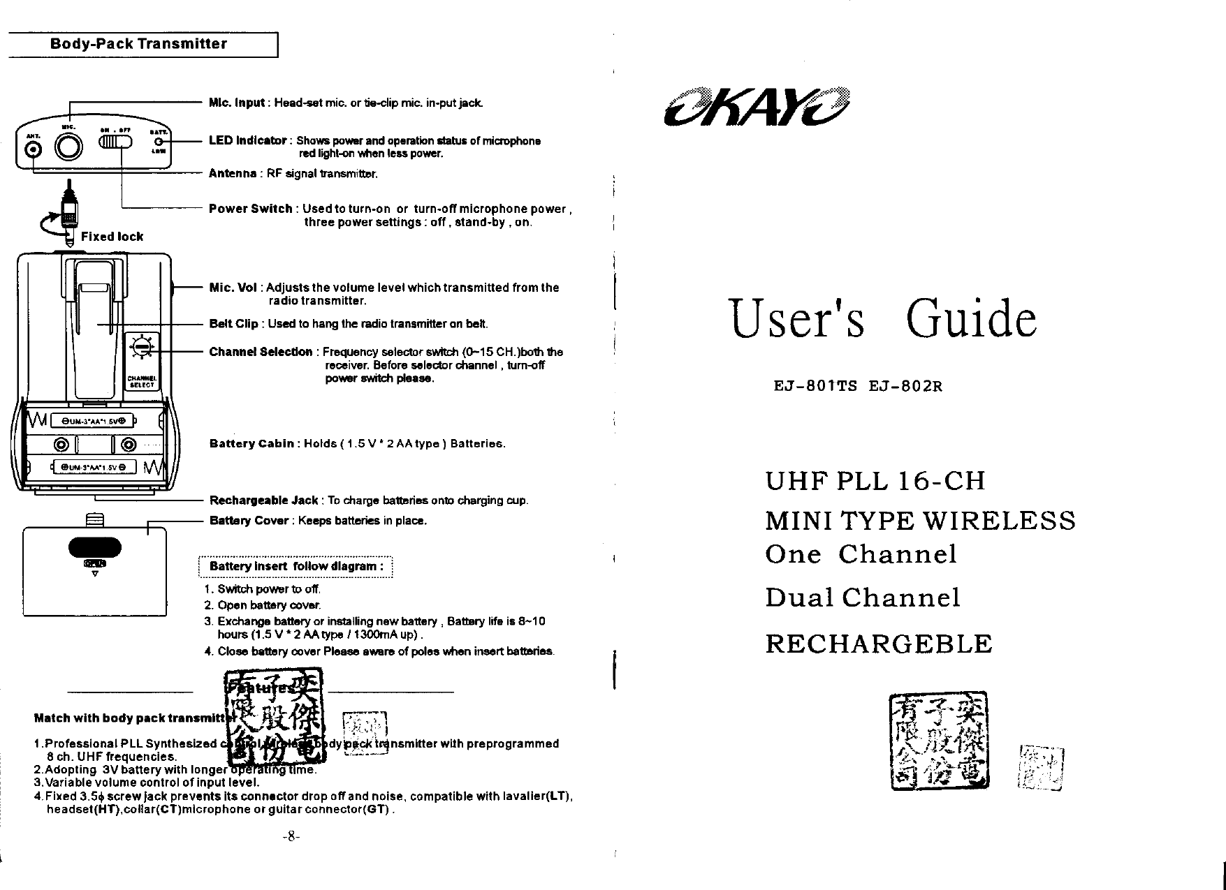 OKAYO Electronics EJ-801TS Wireless Microphone User Manual