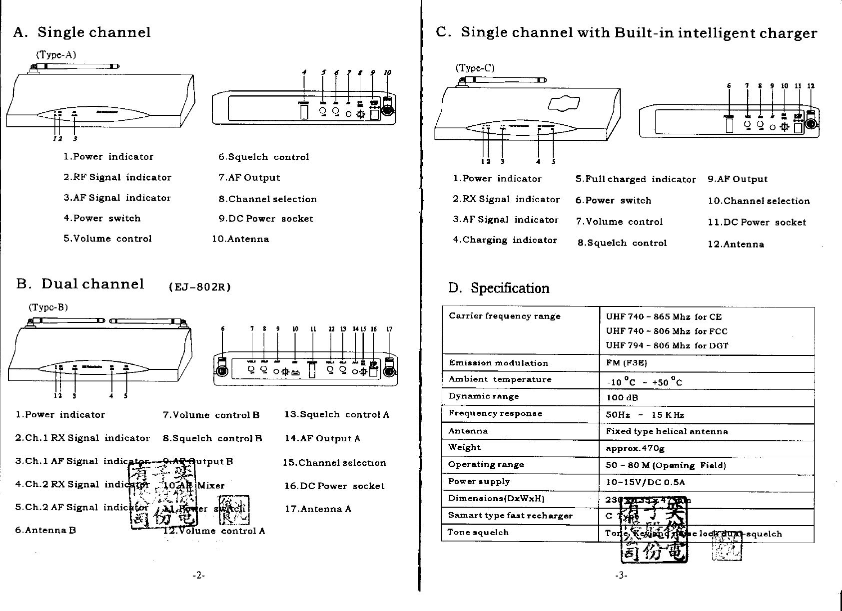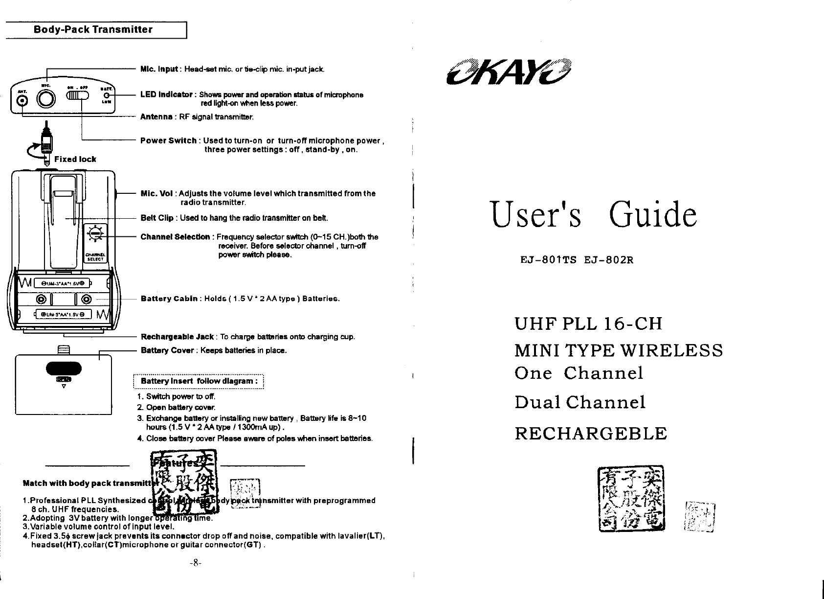 OKAYO Electronics EJ-801TS Wireless Microphone User Manual