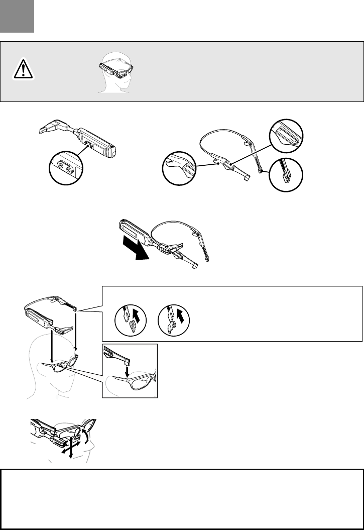 • The EyeTrek visual display should be used only with safety glasses, prescription glasses, or