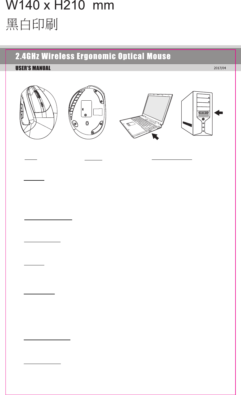 OMEGA TECHNOLOGY INC. Wireless Ergonomic Optical Mouse 24174 manual
