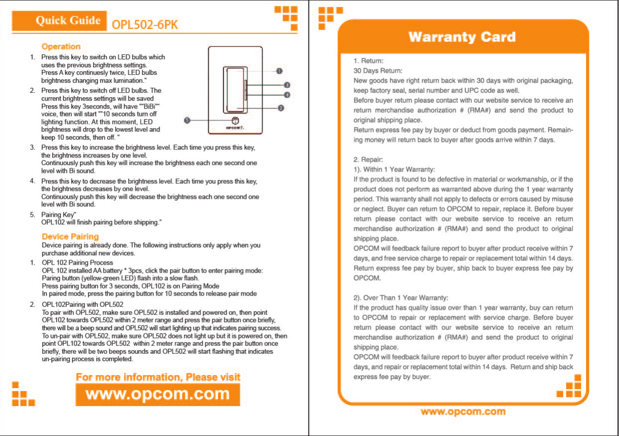 OPCOM O E OPL102 Lighting Controller User Manual 123456