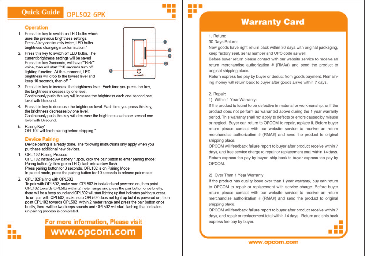 OPCOM O E OPL102 Lighting Controller User Manual 123456