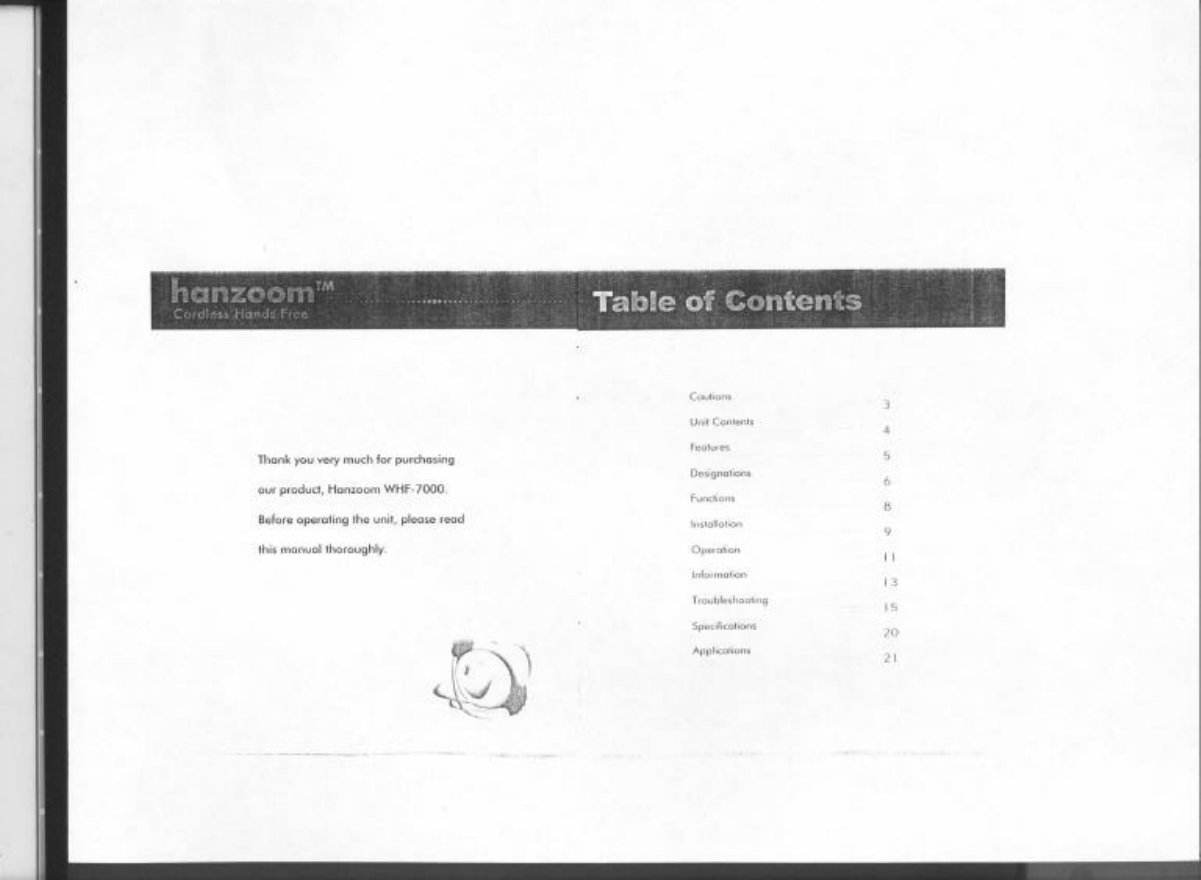 OPENERS WHF7000 900MHZ CORDLESS HANDS FREE MINI PHONE User Manual images