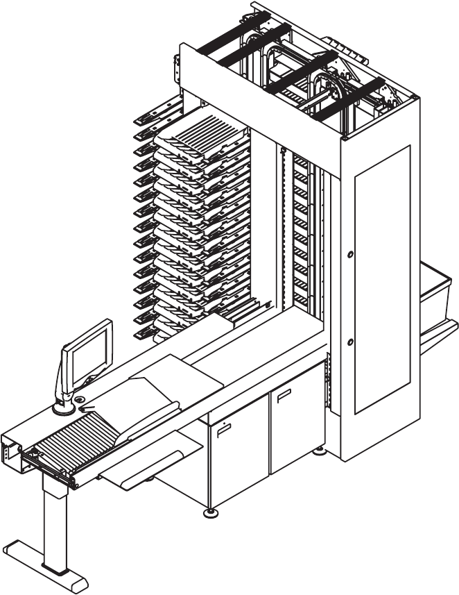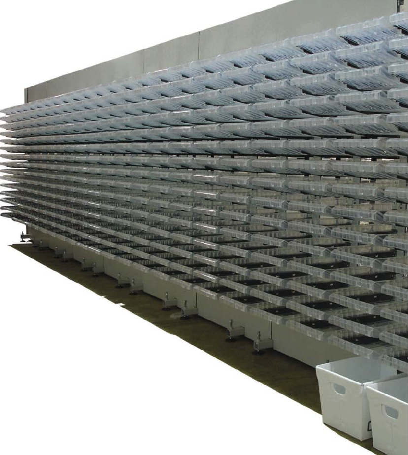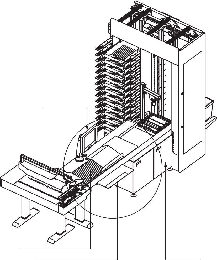 wireless vehicles). Delivery bins are installed on both sides of the stacker section,