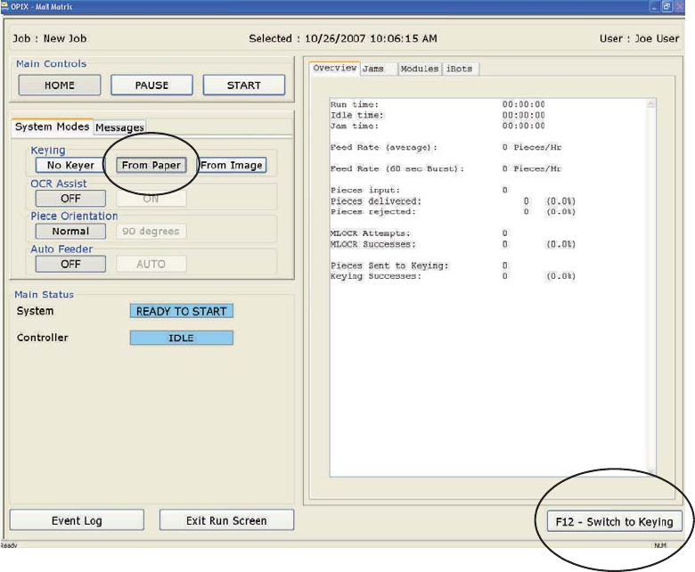 Idle Time Time the operator spent with the Run screen open without a job running.