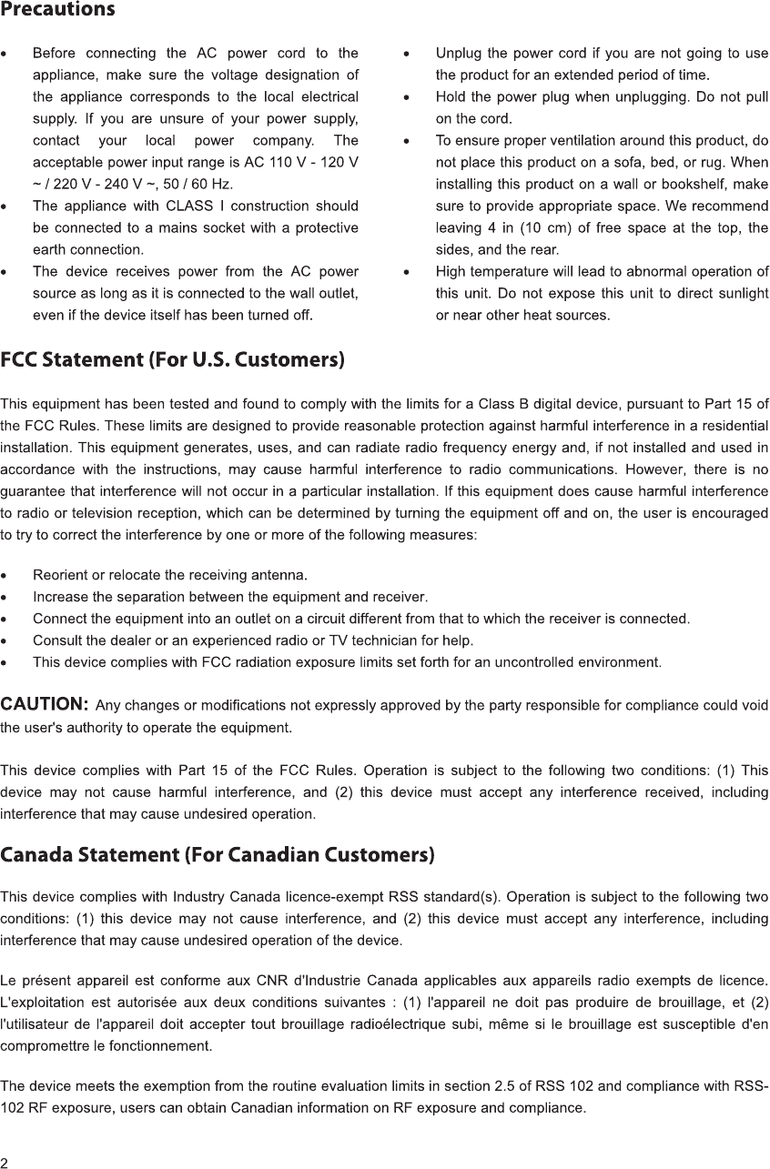 Canada Statement (For Canadian Customers) ............................................................................................................ 2