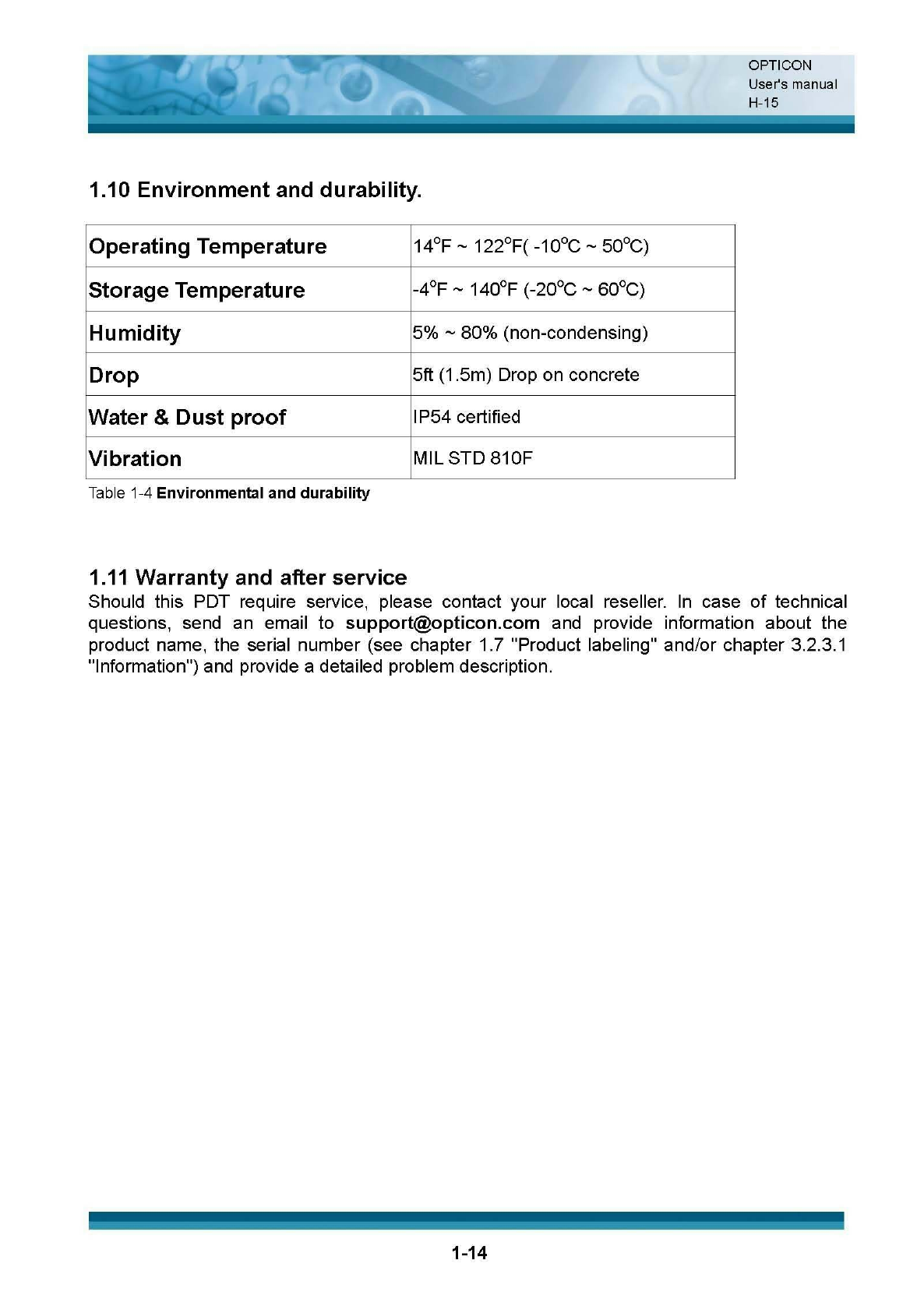 after purchase, covering defects in material and workmanship. Opticon will repair or, at its opinion,