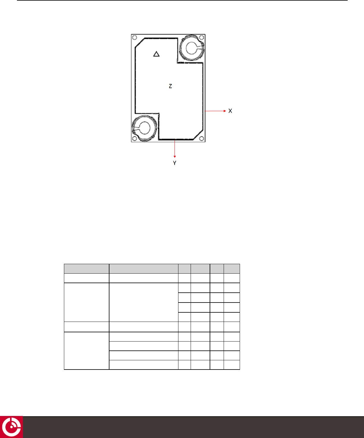 The device has an internal 3D accelerometer to detect motion in any axis. Figure 5 shows the positive axes for the