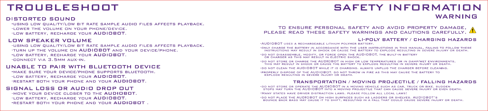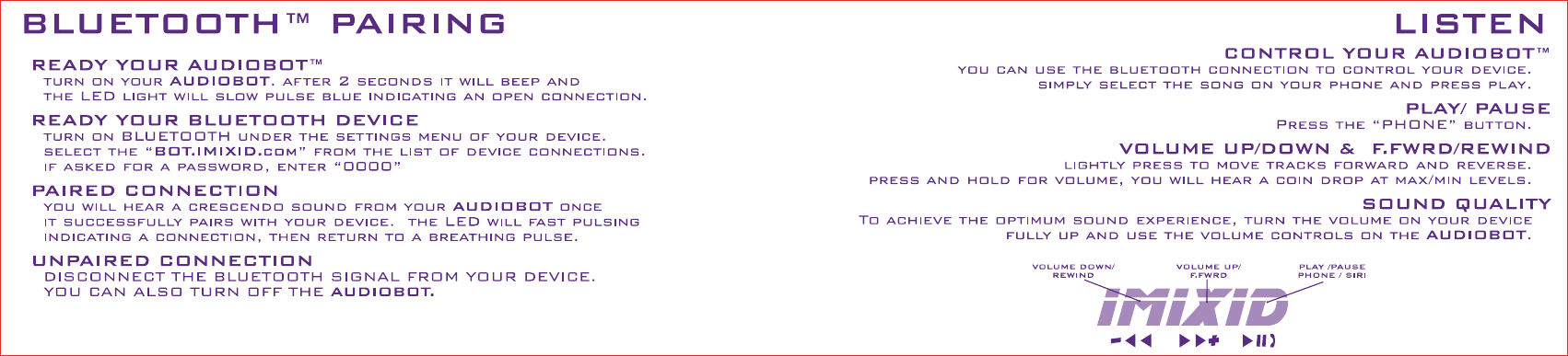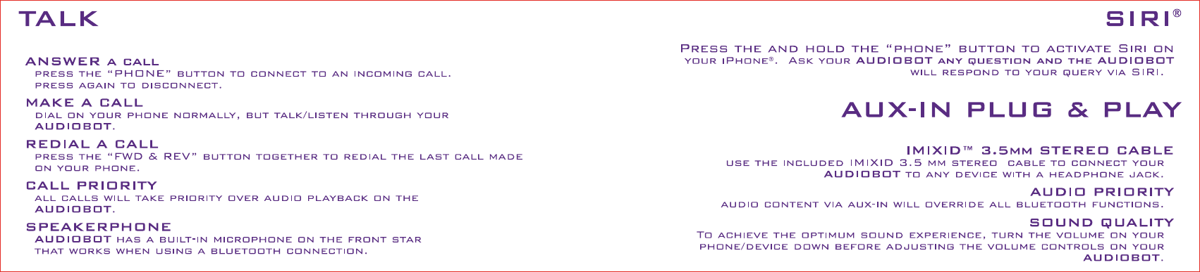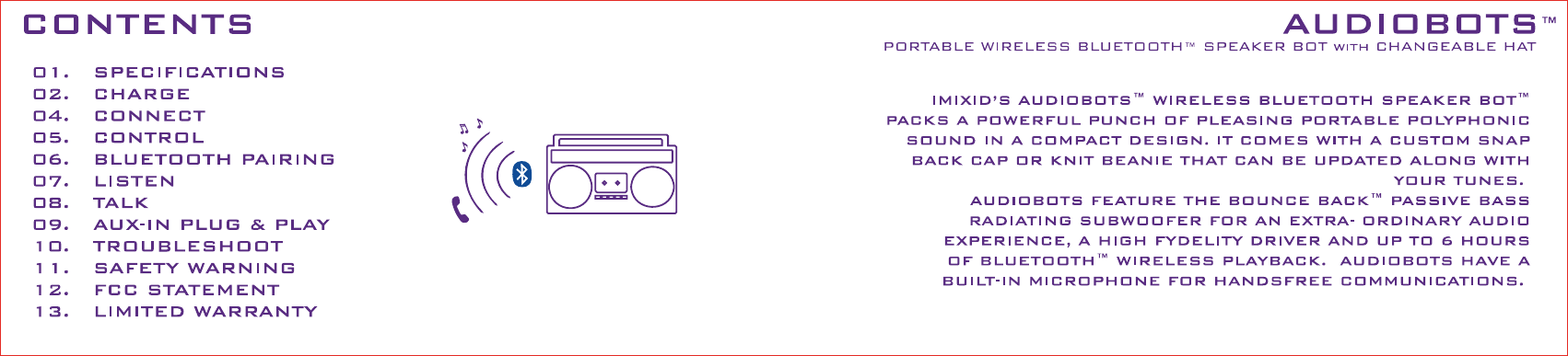 ORIGINAL SOUNDTRACK TECHNOLOGY 71001 Bluetooth Speaker User Manual 2014 04 17 AUDIOBOTS BT MANUAL X