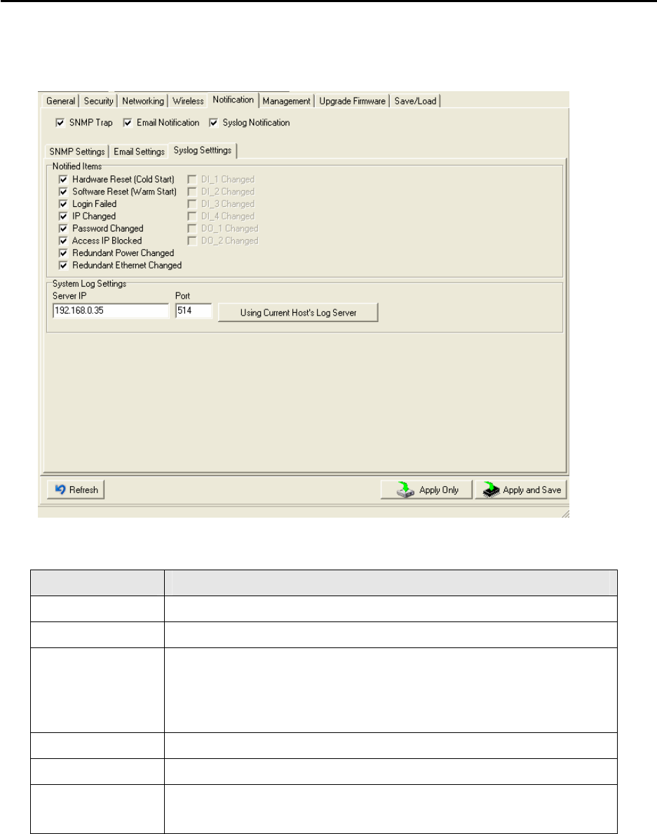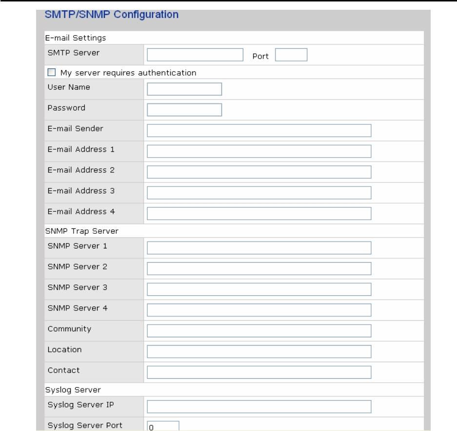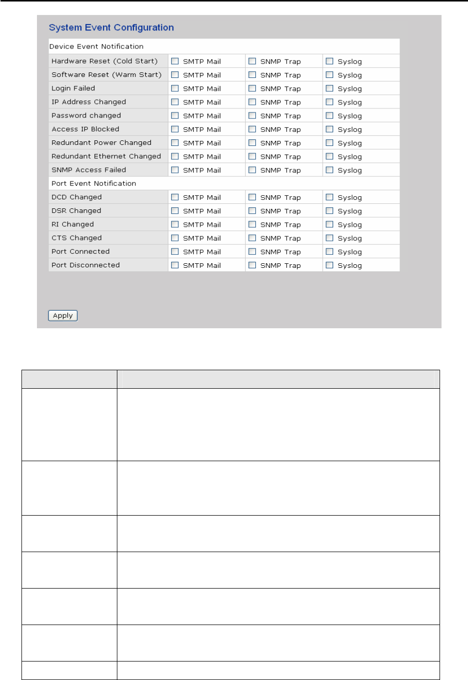 Event Warning by Syslog, Email, SNMP trap, and Beeper