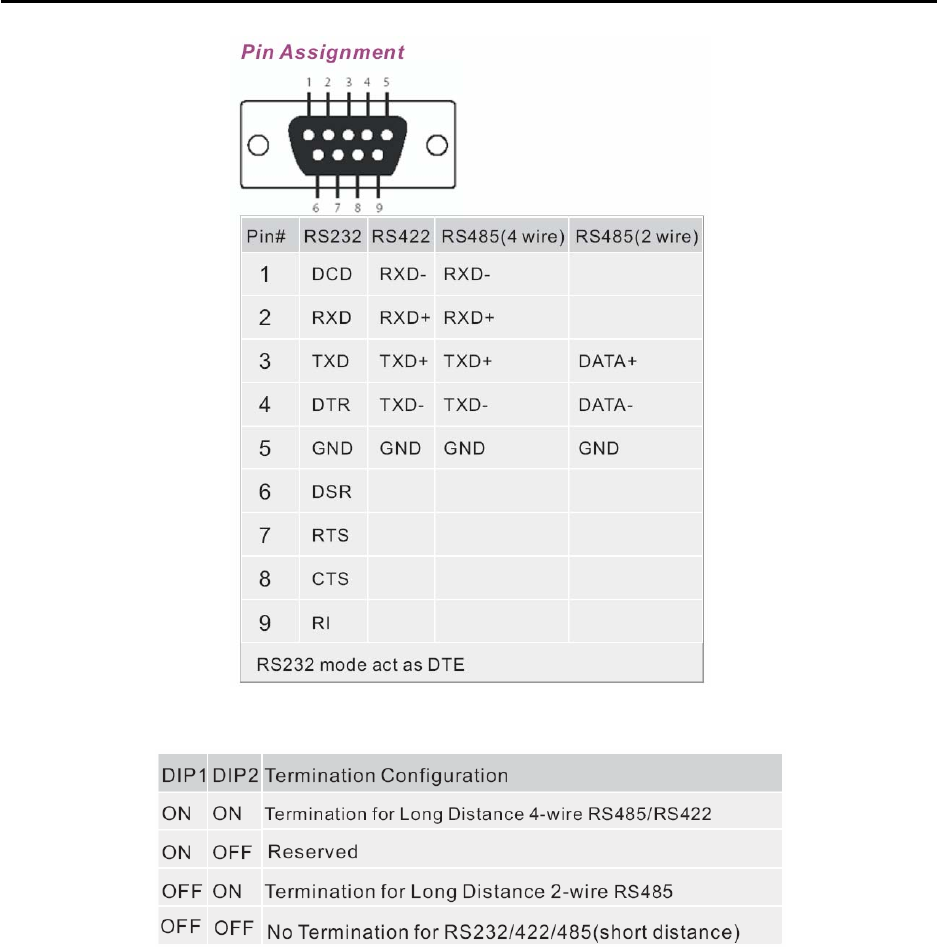 RS-422 signals Tx+,Tx-, Rx+, Rx-,GND