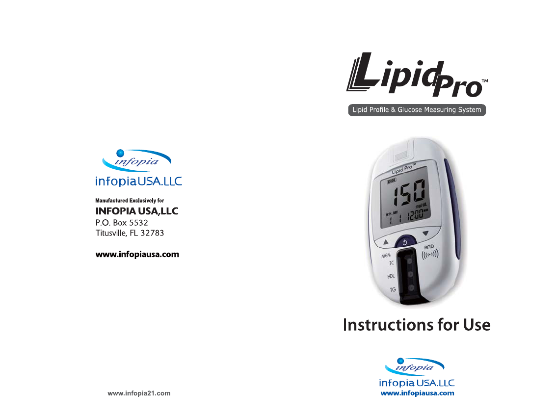 Infopia Co.,Ltd. Lipid profile and glucose measuring system for self testing Lipidpro FDA MeterManual Eng