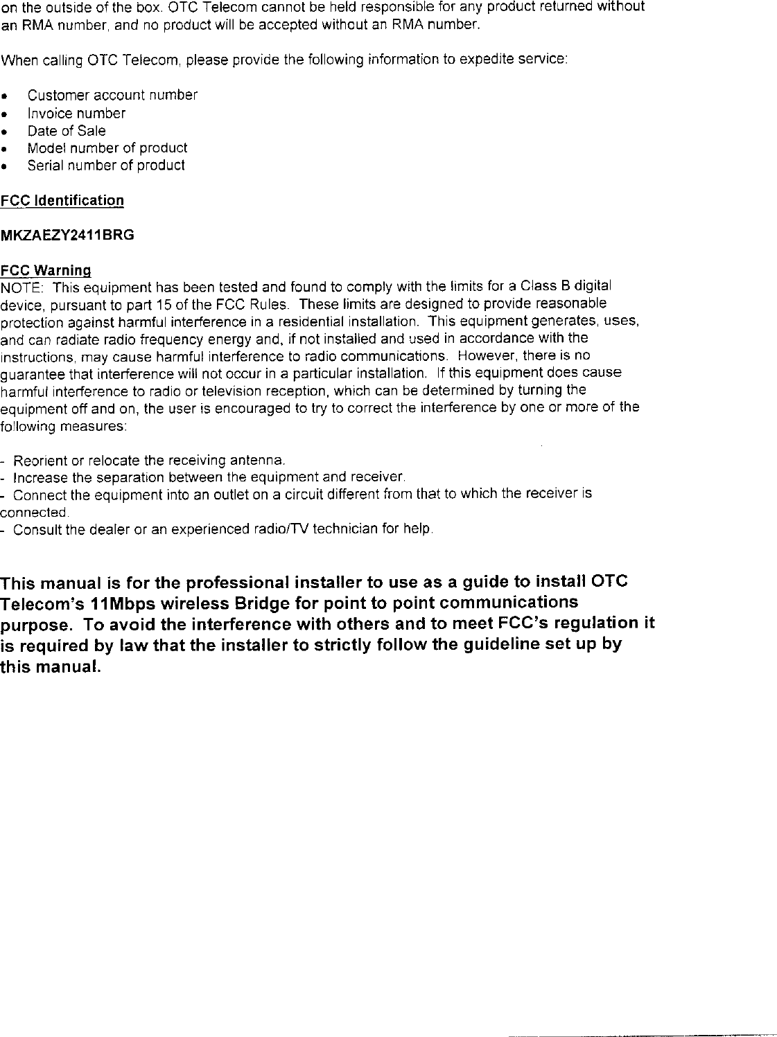 OTC Wireless AEZY2411BRG LAN Bridge User Manual 8