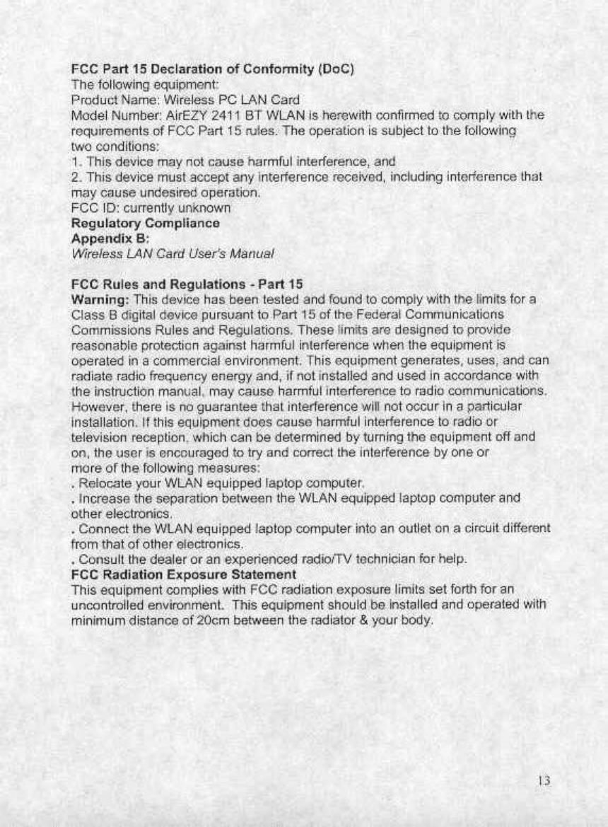 OTC Wireless AZY2411BT 2.4GHz 802.11b Client Radio DSSS Data Transceiver User Manual 1