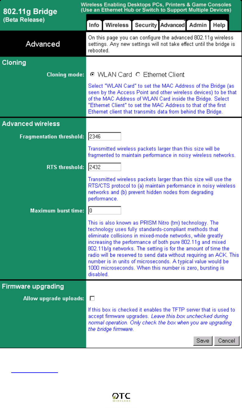 OTC Wireless WEA11G03682 802.11g Wireless Ethernet Adapter User Manual ACR AG UG