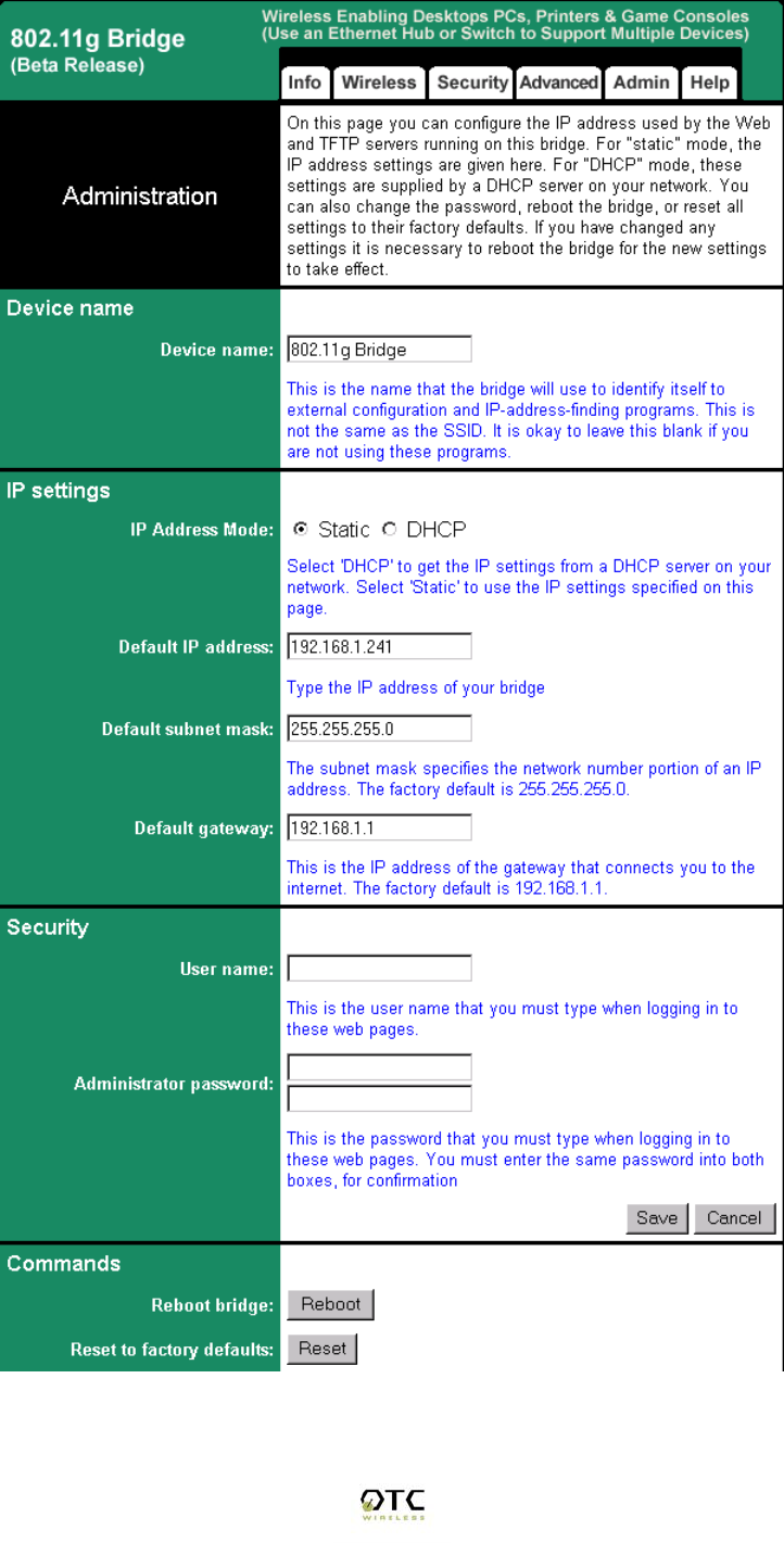 OTC Wireless Inc 802.11g Wireless Ethernet Adapter ACR AG UG