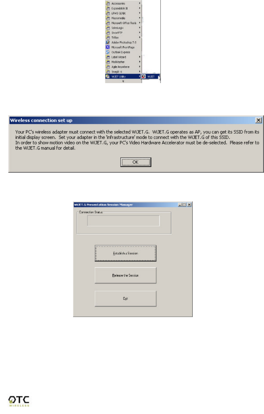 OTC Wireless WIJETVIDEO 802.11g Wireless Projector/ Monitor Adapter User Manual WiJET Video TM