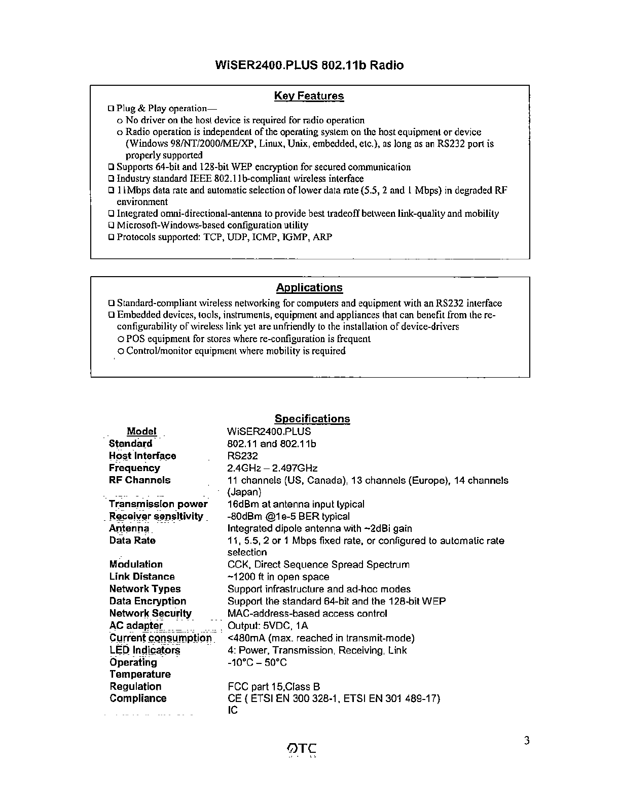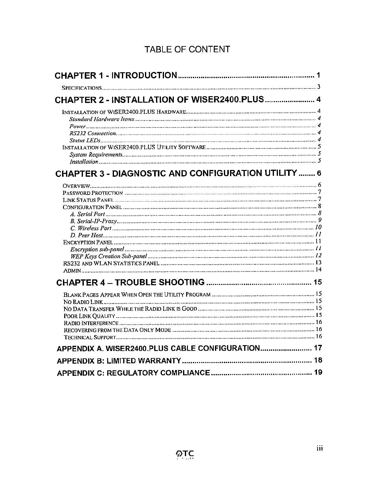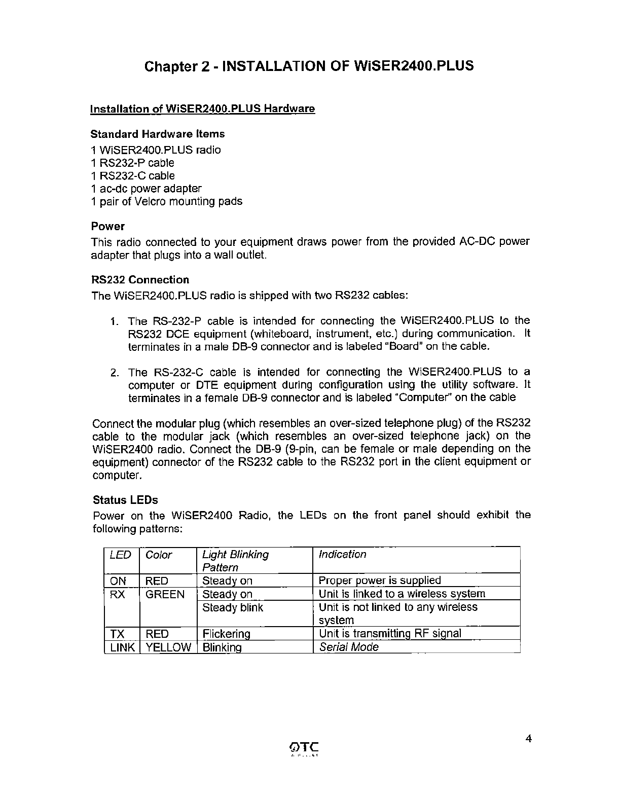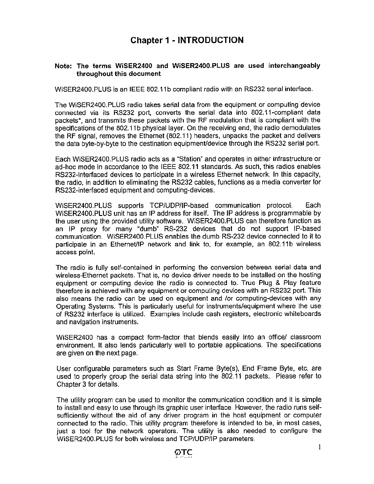 OTC Wireless WISERPLUS 802.11b Wireless Serial Port Adapter User Manual