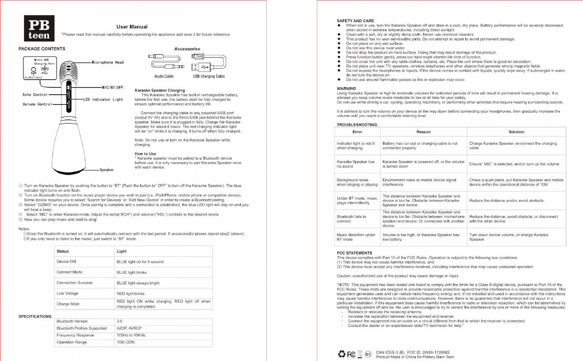 Ocean 1126882 KARAOKE BT MICROPHONE User Manual