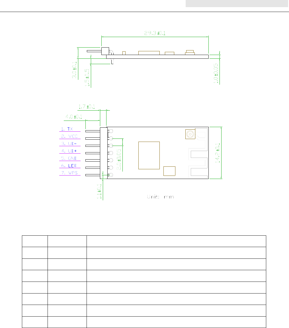 GWF-3M08 is a WLAN module supporting IEEE 802.11 b/g/n standards with max 7-pin