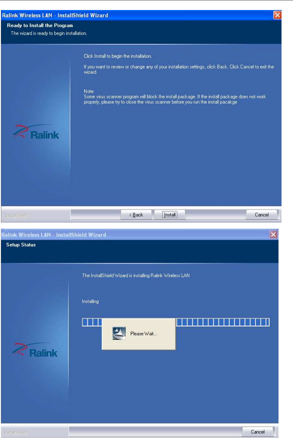 b. There shows a setup type window, you can select “Install driver only” or “Install driver and Ralink