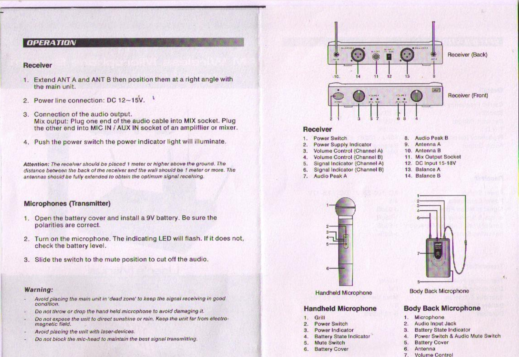 Okura U.S.A Wireless Microphone Users manual