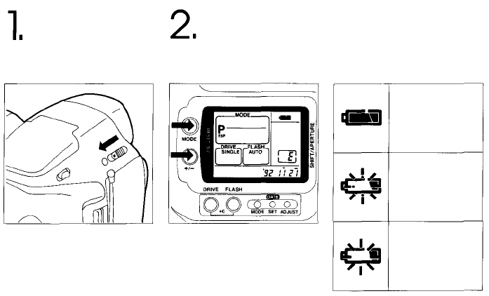 Battery check: Displayed on LCD panel.