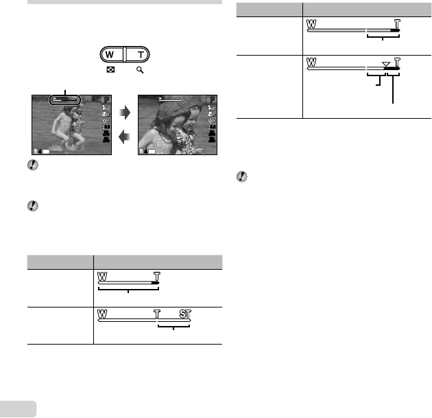 Shooting range : 0.6 m (2.0 ft.) to (W), 1.0 m (3.3 ft.) to (T) (normal)