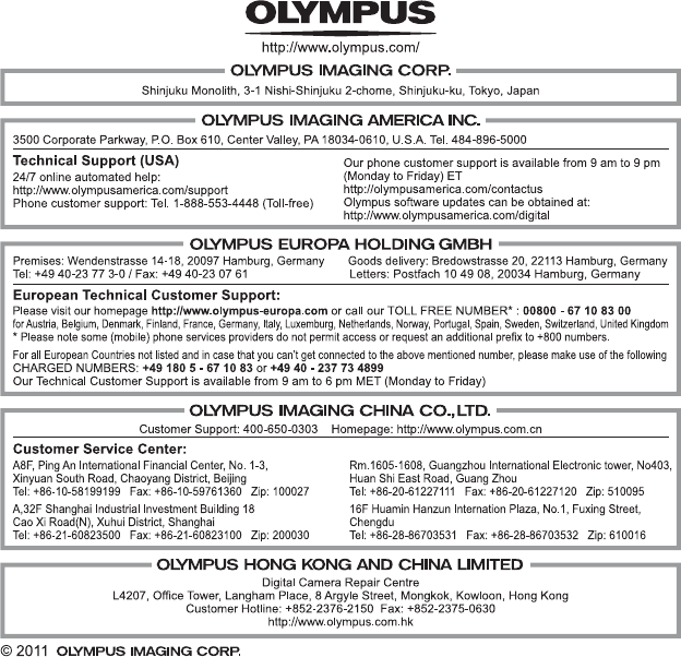 ● In the interest of continually improving our products, Olympus reserves the right to update or modify information